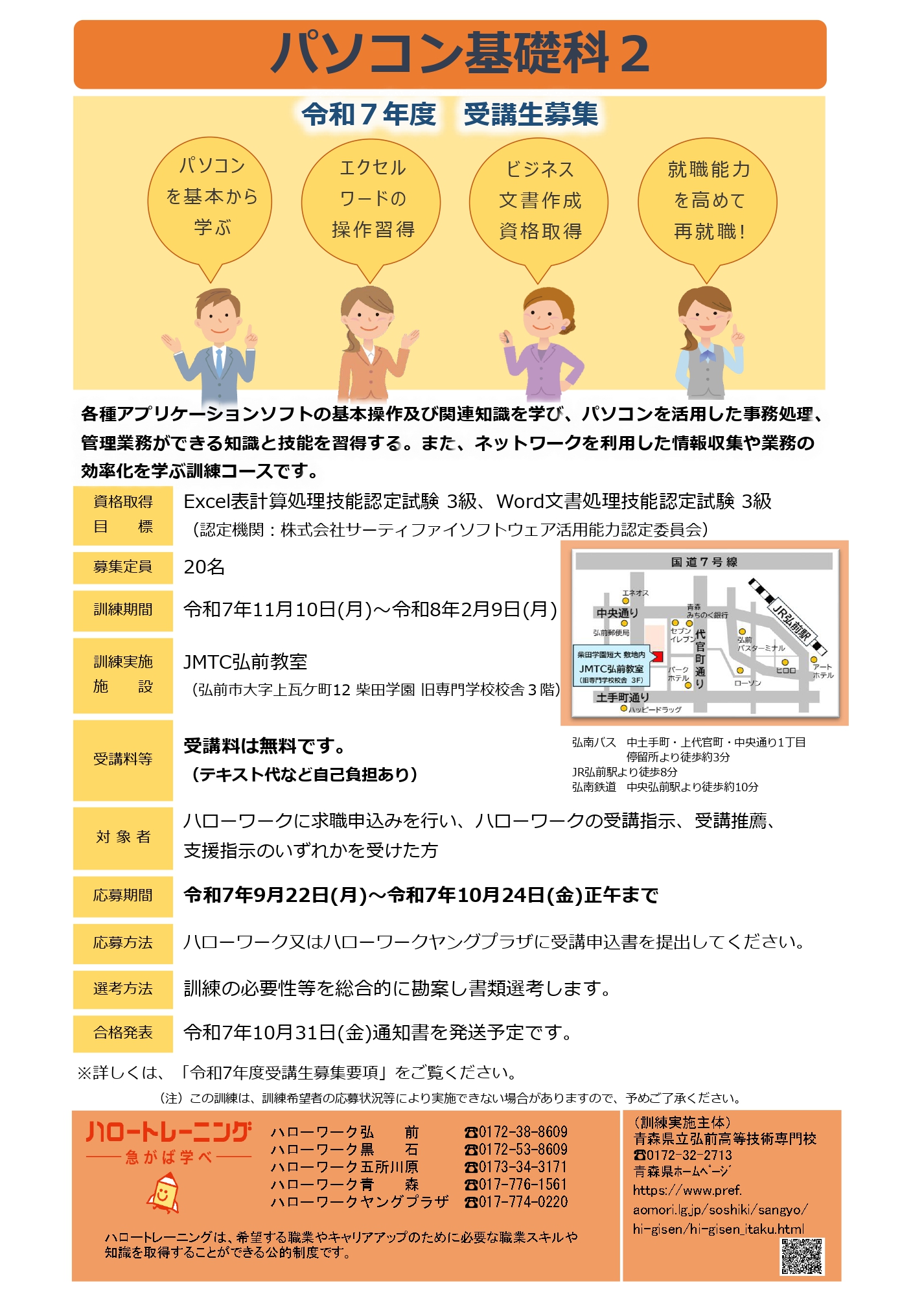 JMTC弘前教室では、公共職業訓練「パソコン基礎科2」の受講生を募集中です!
