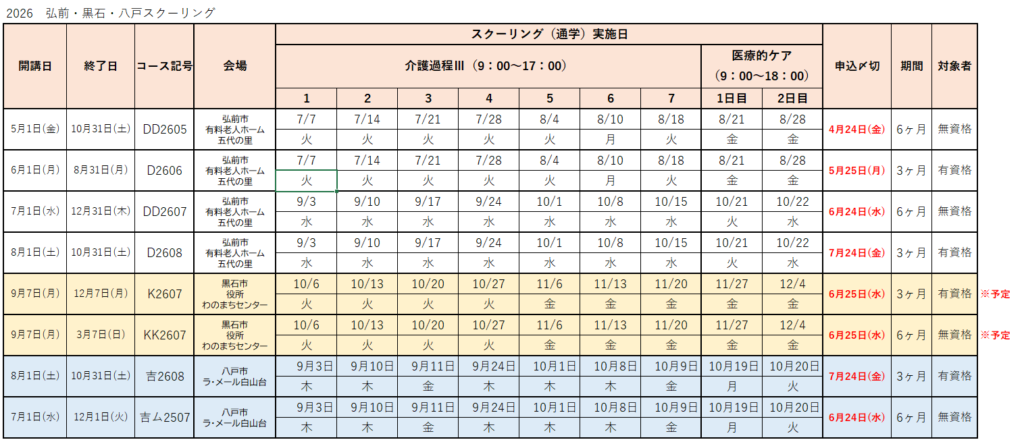 介護過程Ⅲ 45時間、医療的ケア 1日または2日